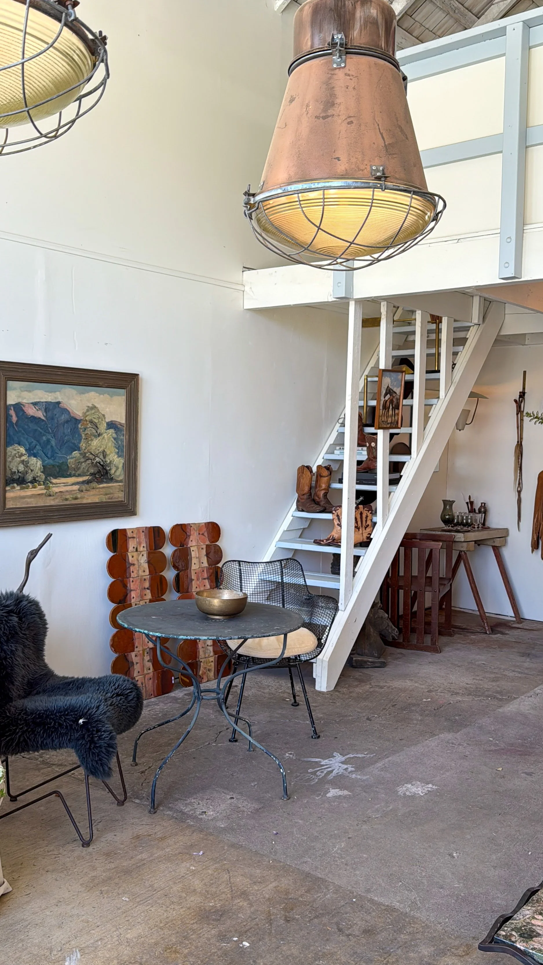 The studio itself was curated perfection. Vintage furniture, worn leather chairs, one of a kind boots, and shelves filled with treasures made the space feel like home.